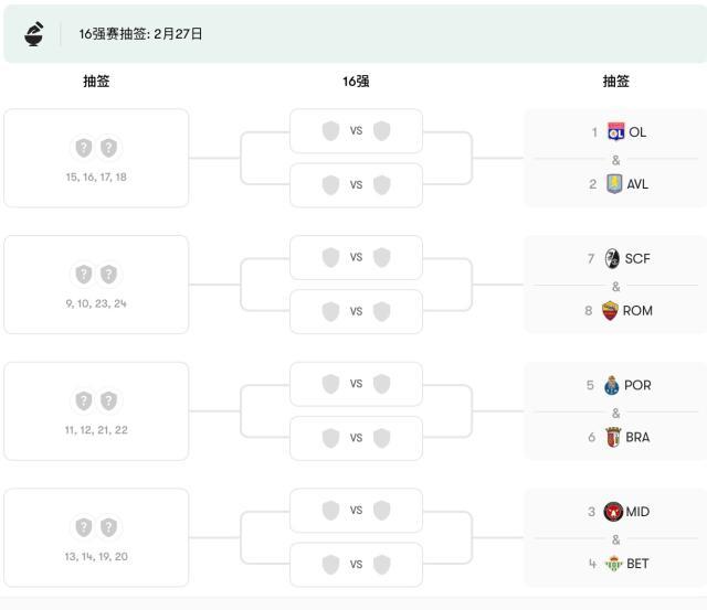 附加赛以及1/8决赛可能的对阵图如下: